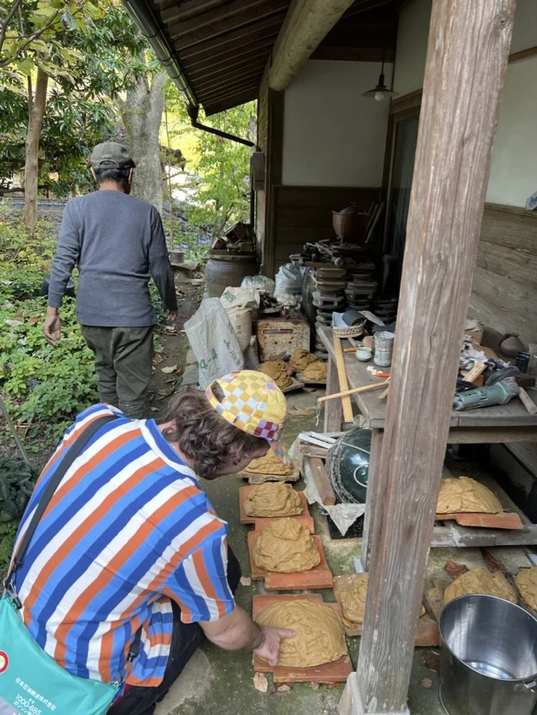 普段はスタジオで入荷した粘土を使って成形、ペイントや焼成を行なっているというバスターは、自然の一部として生活と仕事が一体となった循環の中で生き、作るという源太さんのスタイルに強烈な刺激を受けた様子で「自分の創作手法を白紙に戻さなければいけない」とまで言っていました。
