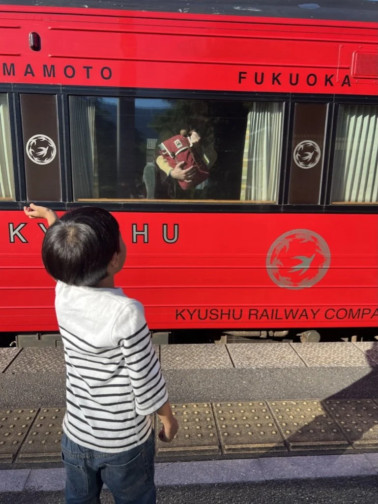 お父さんがパントマイマーで、4歳から一緒に寝ているというキリンの人形と旅をしているバスター。またうきはへ戻ってきてくれますように!