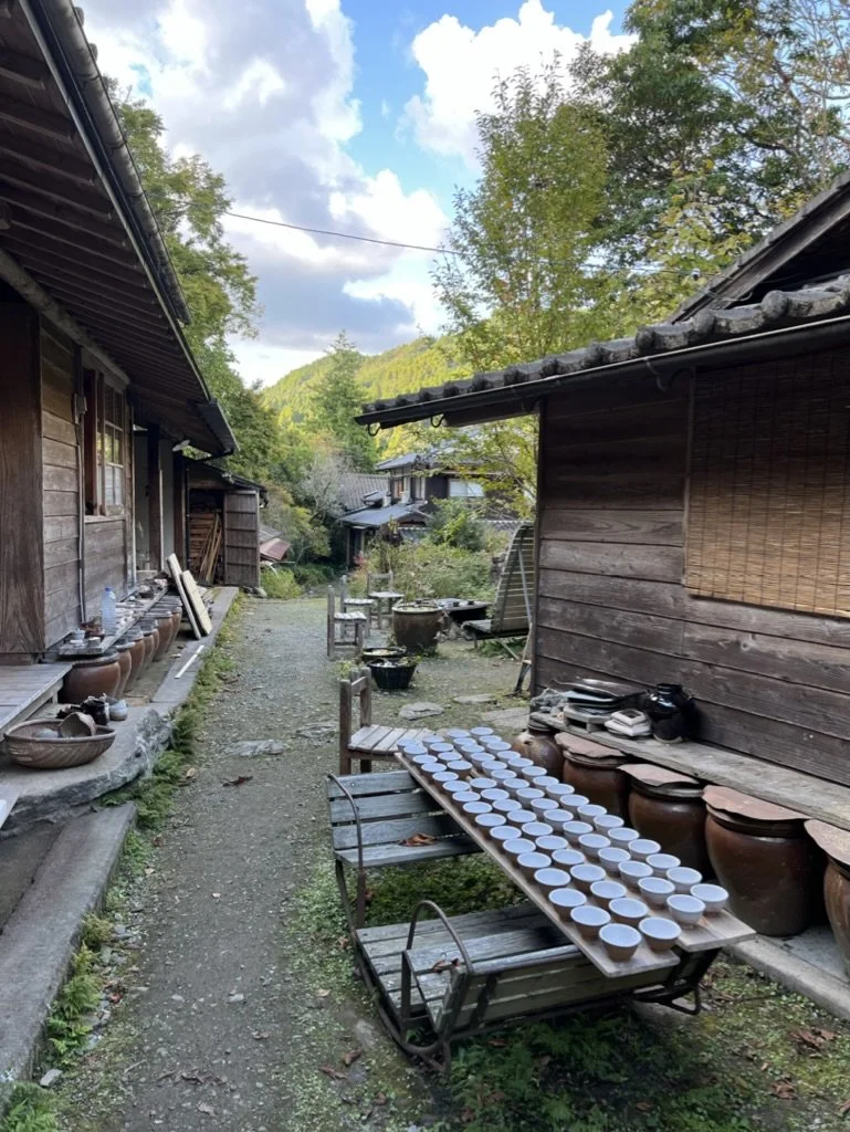 We visited a kiln of Genta Yamamoto in Hoshino Village next to Ukiha, where he showed us the overall process of making pottery -from preparing clay from the mud he sourced from the nearby mountain to firing it in a hand-built kiln using glazes he makes from natural material.